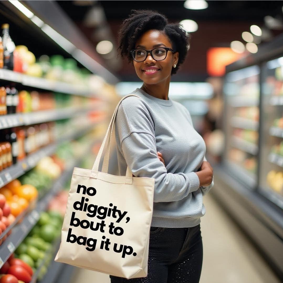 Bring 90s R&B flair wherever you go with the No Diggity Bout to Bag It Up Tote. Perfect for the grocery store, farmer’s market, or thrift shop adventures, this tote combines style, fun, and a little sass. Spacious, durable, and ready to hold all your finds, because it’s time to bag it up, no diggity, no doubt.